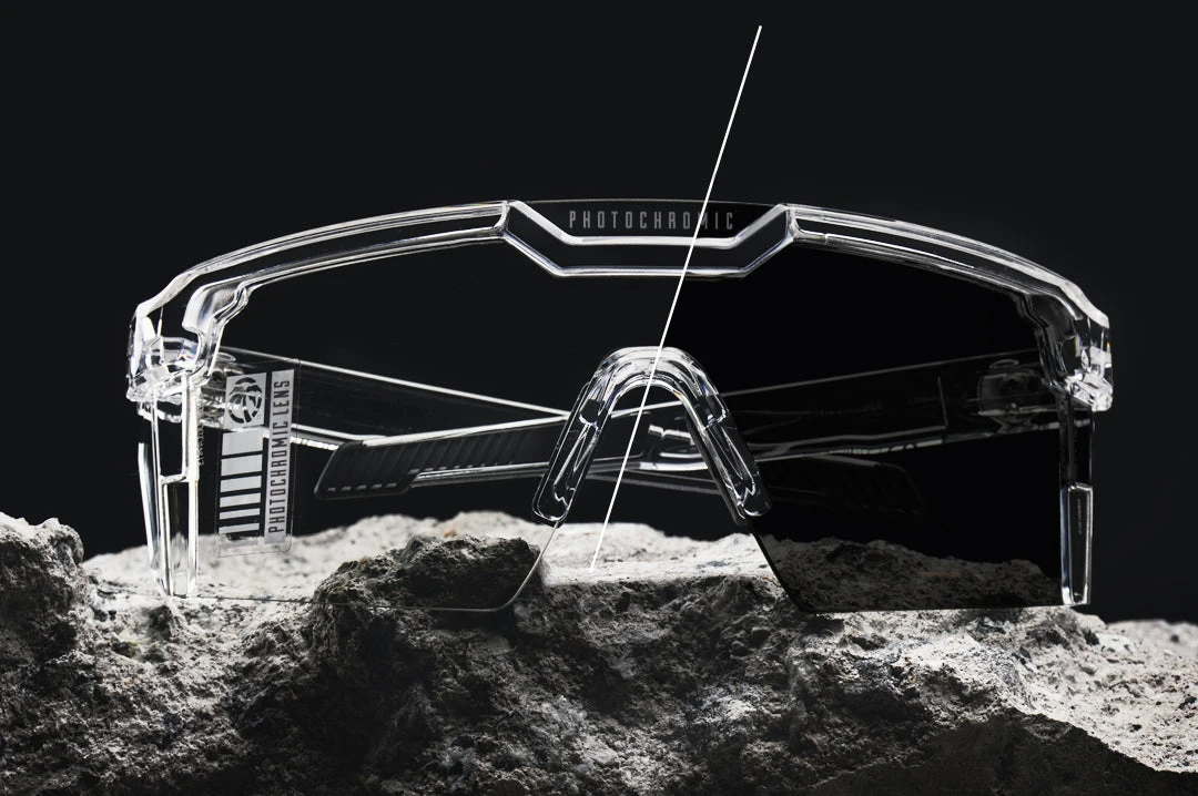 While these will NOT get as dark as our standard Black lenses. We picked a photochromic lens to provide ideal clarity indoors and as dark as possible outdoors to maximize the wearer’s utility of this eyewear.The Future Tech is the beginning of a stronger, faster, more technical era for Heat Wave Visual. These are the future of weaponized visual high-speed performance: Aggressive, loud and innovative beyond any pair of sunglasses before them. We spent over 2 years designing, researching, and refusing to compromise on every facet of the Future Tech to ensure that we’re giving our customers what they deserve: The absolute best eyewear on the market. Designed from the ground up, the Future Tech incorporates a multitude of new, cutting edge features to improve every aspect of their performance: