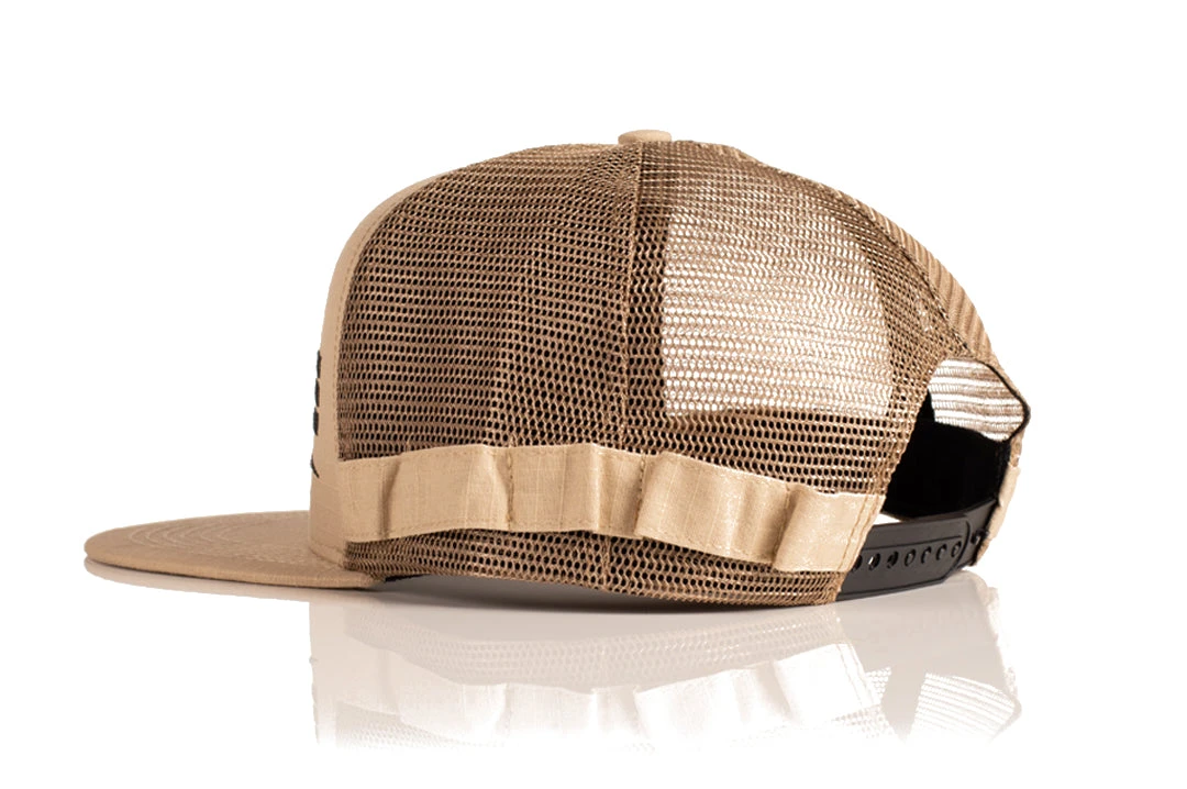 The Bolt hat is back – This time it’s on a boonie/trucker hybrid. A Desert tan ripstop rules the crown, while canvas boonie hat inspired loops take place of the side stripes to add your favorite local foliage to.